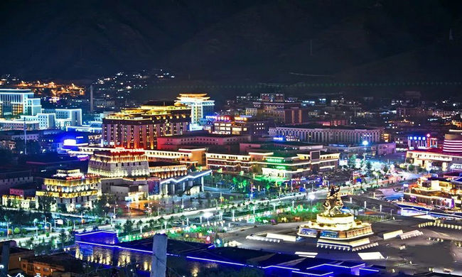 夜幕降臨,藏族居民家中的電燈亮起來了,街道兩旁的路燈亮起來了,樓體亮化亮起來了,玉樹的夜晚燈光旖旎、華麗璀璨,這是電網(wǎng)大動脈扮靚的江源小城。