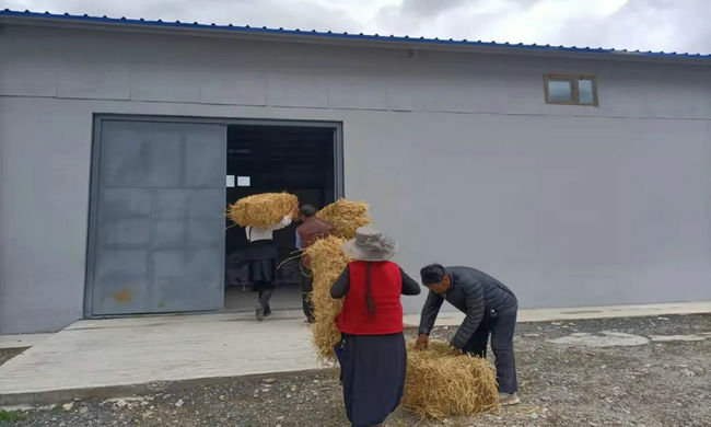 隆寶鎮(zhèn)鎮(zhèn)長俞成:咱們隆寶鎮(zhèn)在玉樹市處于海拔比較高的一個鄉(xiāng)鎮(zhèn),平均海拔4300米以上,由于自然條件比較惡劣,雨雪天氣比較多。去年,我們鎮(zhèn)黨委整合各村的資源,修建飼草料的應急儲備庫,可以儲備1000多噸飼草料,這樣的話,在遇到極端天氣的情況下,保障了牧民牲畜飼草料的供給,讓他們安心過冬。