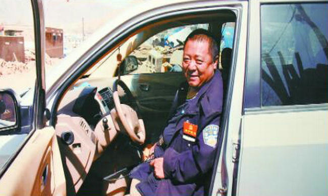 民警才旦多杰與他的“運(yùn)輸車”。顧植霞 程宦寧翻拍