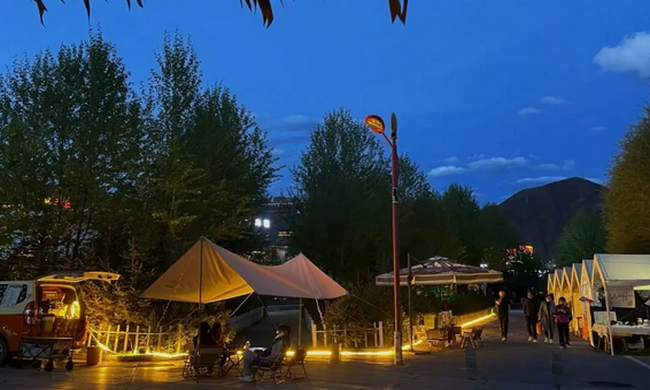 漫步結古街頭,每個人都會有這樣的感受,無論是晨曦初露的清早或是華燈初上的傍晚,在綠樹掩映的廣場,悠閑的市民或跳著鍋莊,或慢跑健身,享受著夏日愜意的時光。