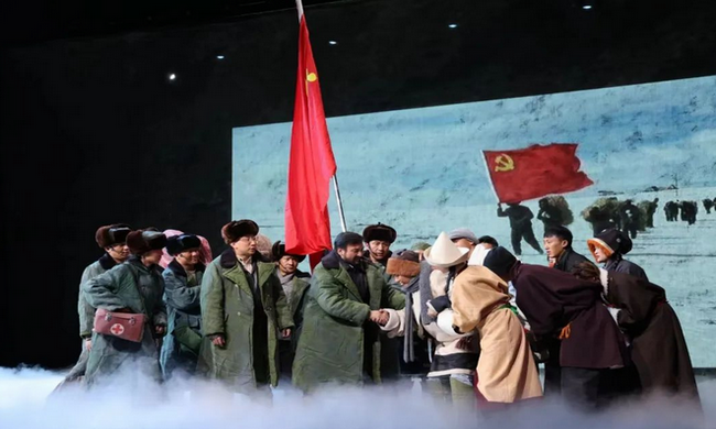 黨課既有杰桑·索南達杰與家人相處的溫情畫面,也有同盜獵分子搏斗的驚心一幕,注重寓情于景、情景交融,以演員們精湛的演技表演、精致的場景道具和精心的舞臺設計,有力支撐起黨課的整體框架結構,充分表達出英雄的氣概和力量,讓現(xiàn)場的黨員干部們在情感上共情、思想上共融,更加堅定了賡續(xù)英雄精神、傳承紅色血脈的思想自覺,更加堅定了感黨恩、聽黨話、跟黨走的政治自覺,更加堅定了勠力同心、接續(xù)奮斗的行動自覺。