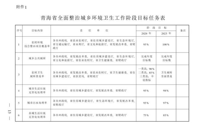 1.青海省全面整治城鄉(xiāng)環(huán)境衛(wèi)生工作階段目標任務表