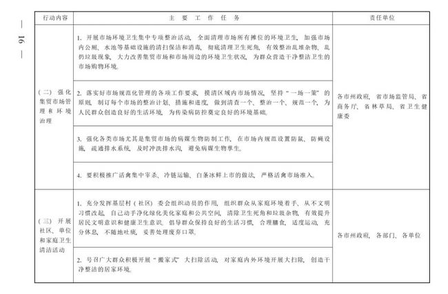 (一)深入開展城鄉(xiāng)環(huán)境衛(wèi)生綜合整治。結合當前新冠肺炎疫情防控工作,以清理環(huán)境衛(wèi)生“臟亂差”為重點,以“除四害”為抓手,大力開展環(huán)境衛(wèi)生綜合整治。城市加大對城中村、城鄉(xiāng)結合部、老舊小區(qū)、背街小巷等重點地區(qū)市容頑癥的整治力度,建立長效管理機制。農村牧區(qū)結合農牧區(qū)人居環(huán)境整治,做好清掃保潔,清除宅前屋后亂堆亂放垃圾雜物,及時收運垃圾,強化人畜飲水安全,做好人畜糞便處理,努力改善農牧區(qū)環(huán)境衛(wèi)生面貌。加強老舊基礎設施改造,保障城市生活垃圾和污水處理設施正常運行。(責任單位:各市州政府,省農業(yè)農村廳、省住房城鄉(xiāng)建設廳、省生態(tài)環(huán)境廳、省衛(wèi)生健康委、省市場監(jiān)管局、省發(fā)展改革委、省水利廳)