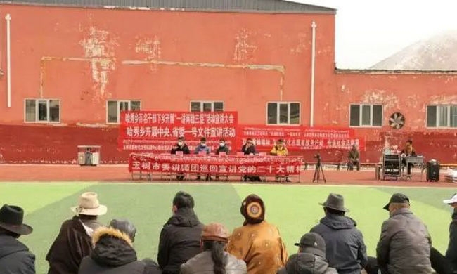 在仲達(dá)鄉(xiāng),講師團(tuán)成員緊緊圍繞黨的二十大、中央一號文件精神,結(jié)合仲達(dá)鄉(xiāng)發(fā)展實際,就如何深刻領(lǐng)會文件精神、如何確保貫徹落實進(jìn)行了詳細(xì)闡述。從政策解讀、農(nóng)牧業(yè)發(fā)展、糧食安全、產(chǎn)業(yè)發(fā)展、基層治理、家庭教育、婦女工作等方面通過藏漢雙語進(jìn)行詳細(xì)講解。